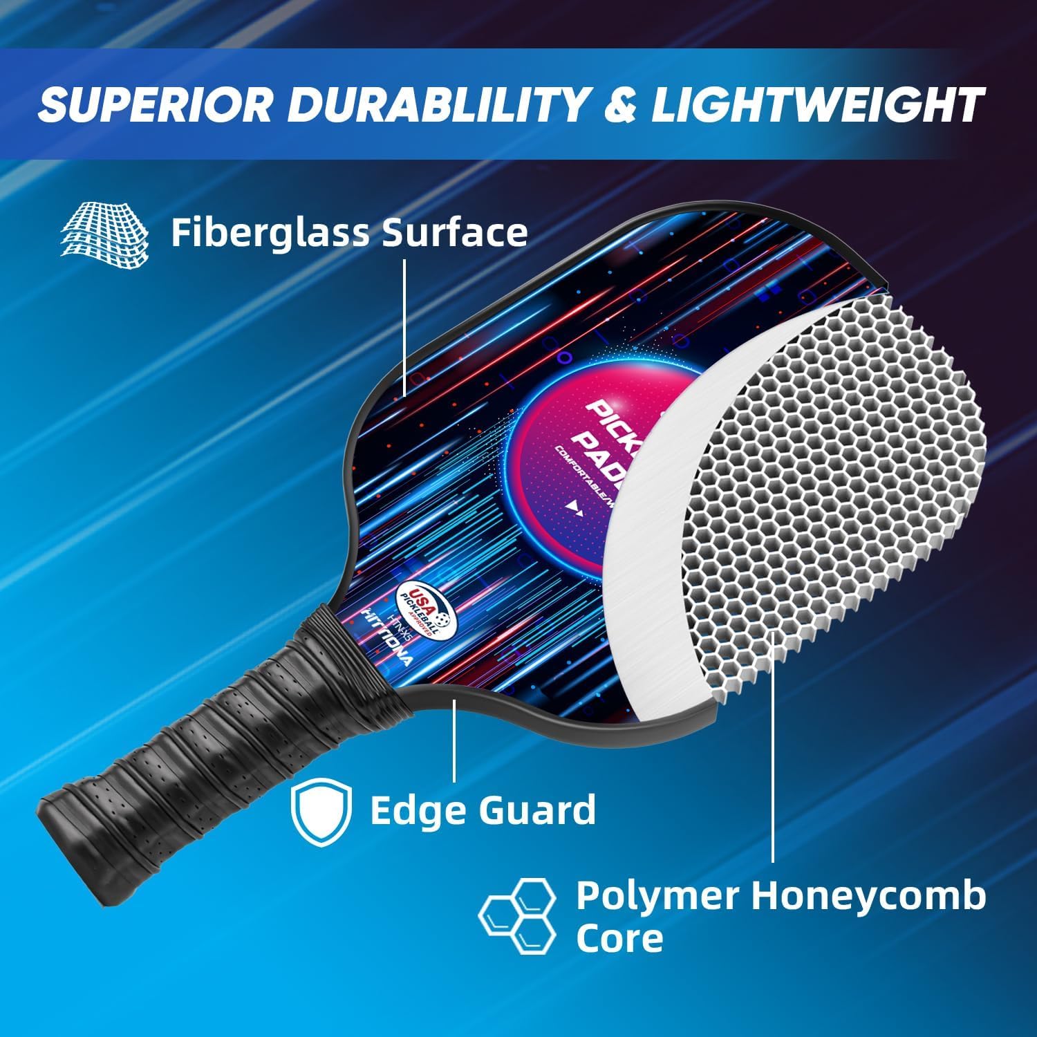 HITTIONA Pickleball Paddles - Fiberglass Pickleball Paddles Set of 2, USAPA Approved Pickle Ball Rackets 2 Pack with 4 Pickleball Balls, 1 Pickleball Bag, Paddles Ball Set for Beginners