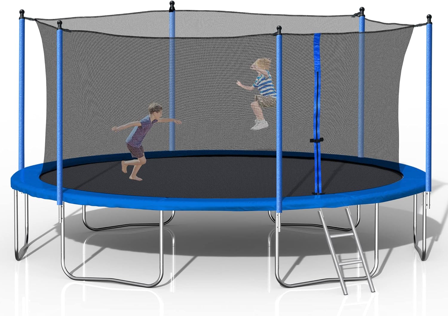 Trampoline for Kids and Adults - 14FT Trampoline with Safety Enclosure Net, Round Trampoline ASTM Approved, Trampoline Outdoor with Heavy Duty Jumping Mat Spring Cover Padding and Ladder